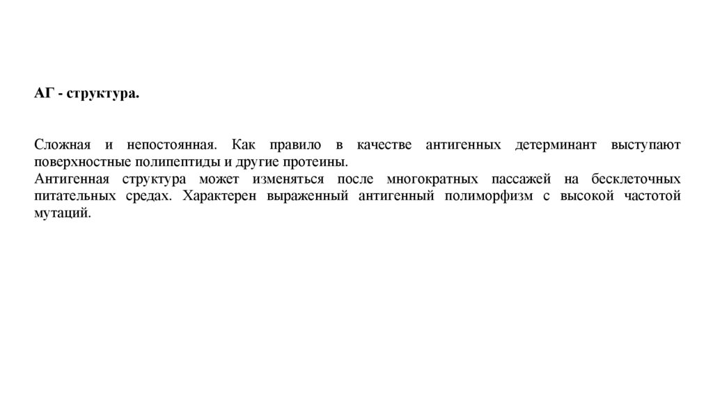 АГ - структура.Сложная и непостоянная. Как правило в качестве антигенных детерминант выступают