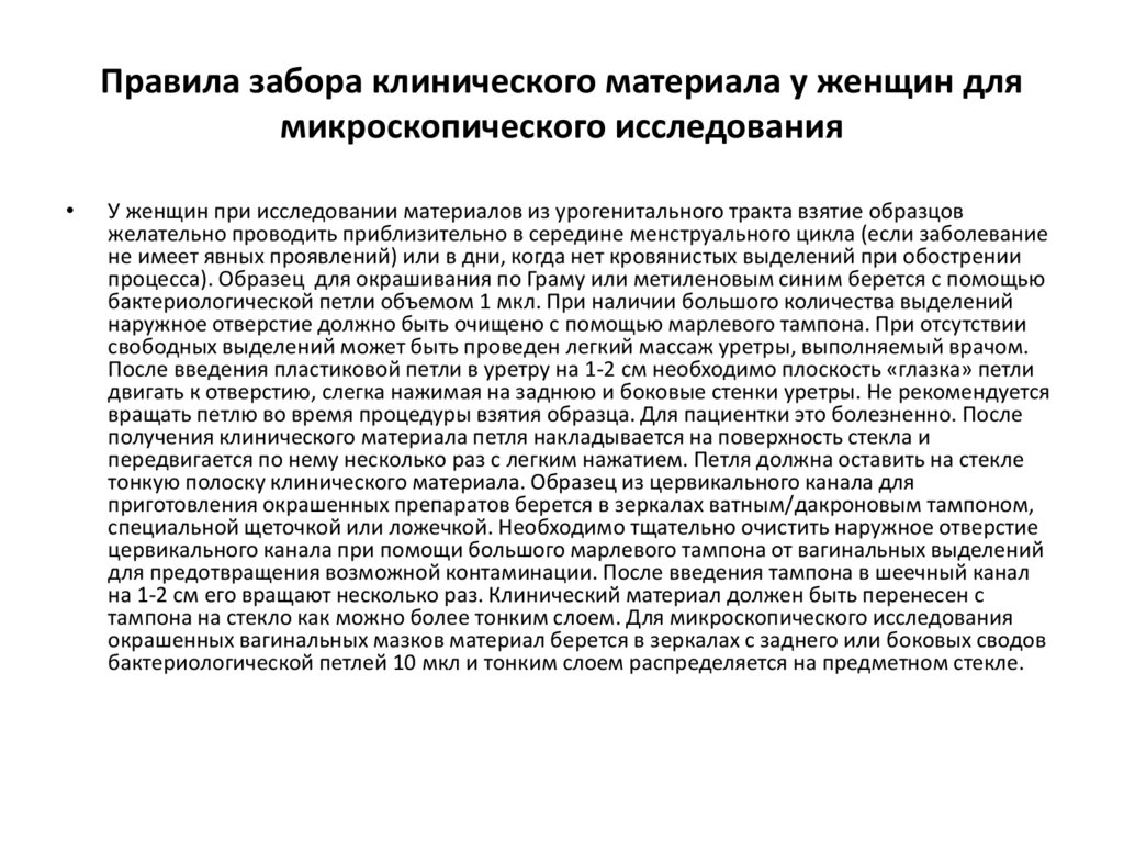 Правила забора клинического материала у женщин длямикроскопического исследования