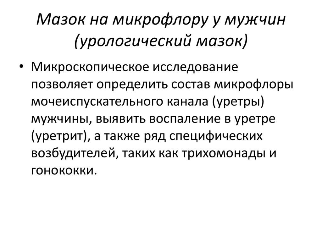 Мазок на микрофлору у мужчин(урологический мазок)