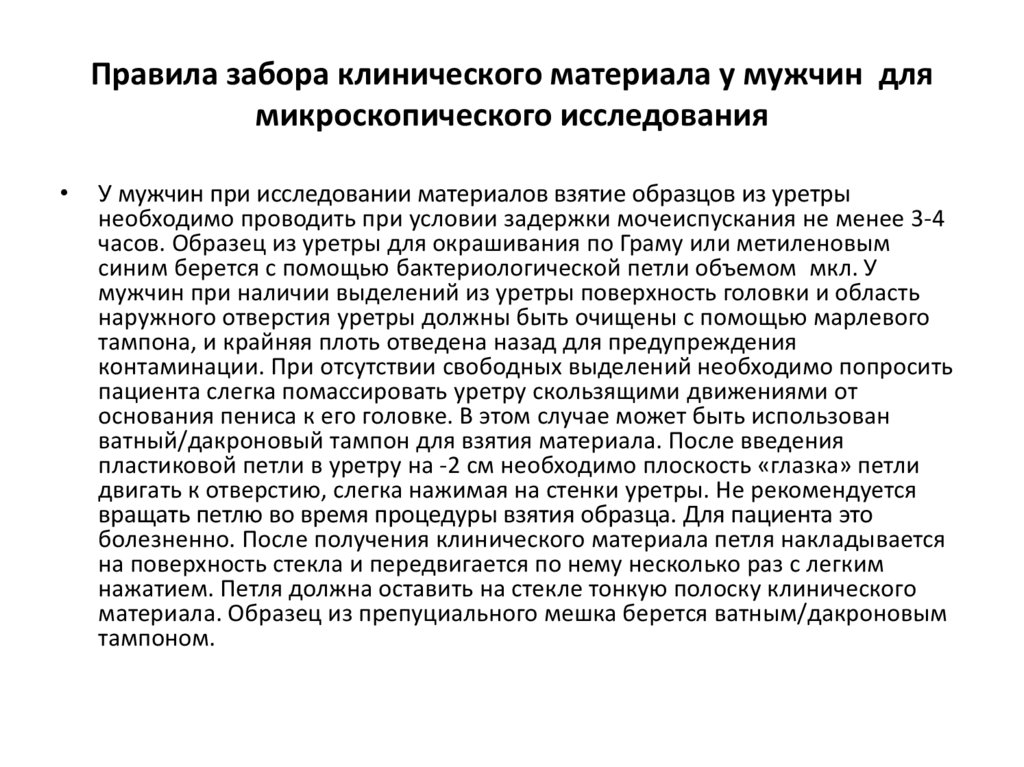 Правила забора клинического материала у мужчин длямикроскопического исследования