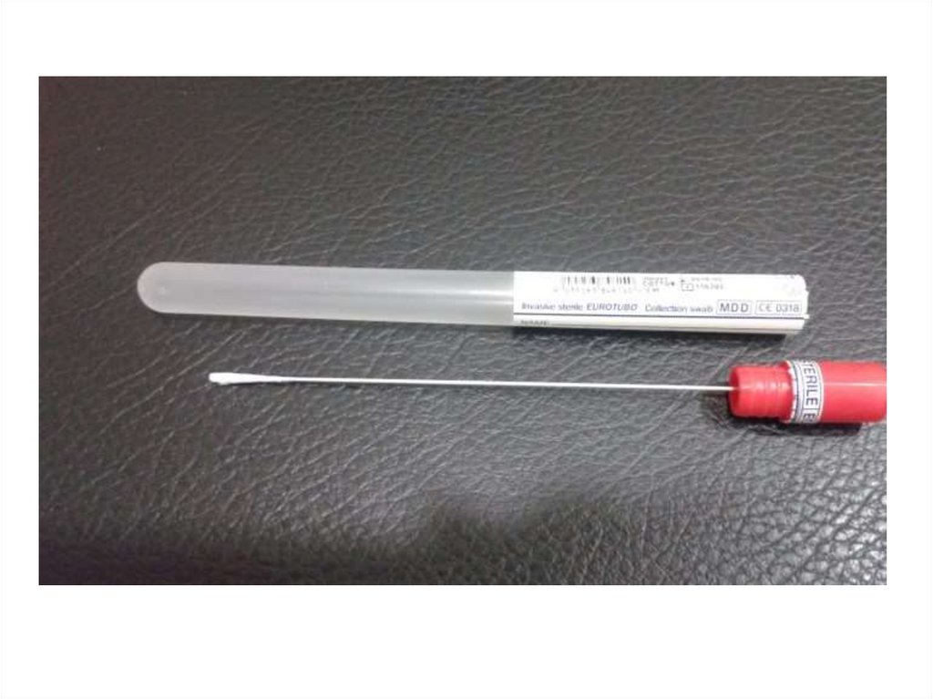 на 1-2 см его вращают несколько раз. Клинический материал должен быть перенесен с