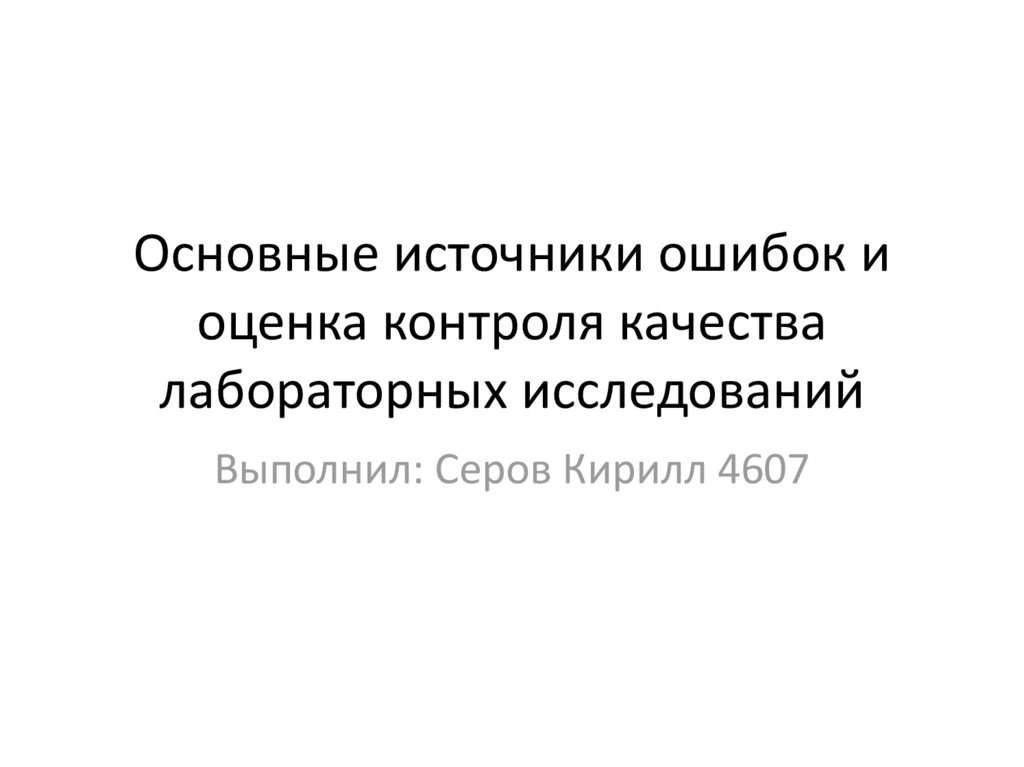 Основные источники ошибок и оценка контроля качества лабораторных исследований
