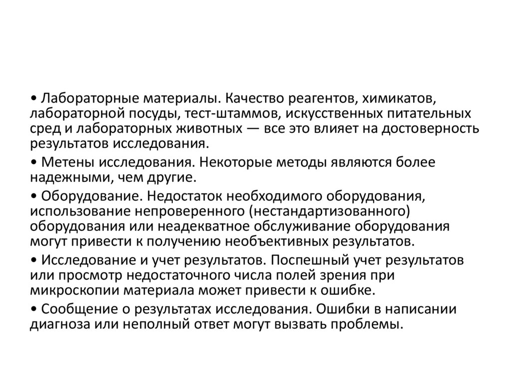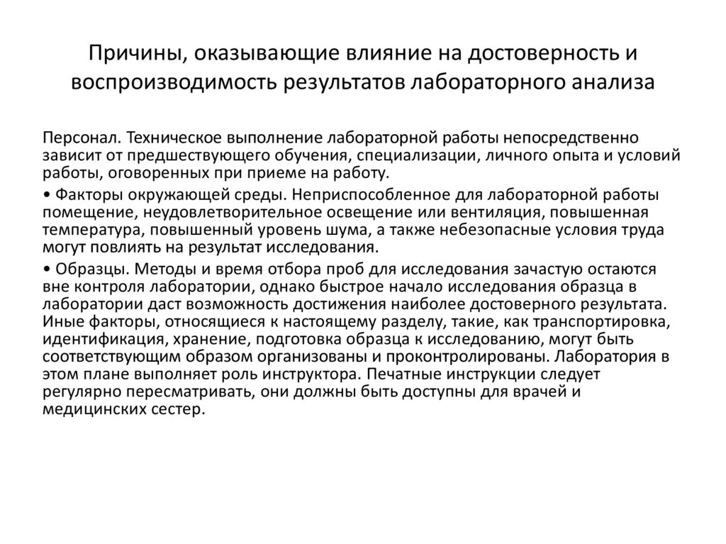 Причины, оказывающие влияние на достоверность ивоспроизводимость результатов лабораторного анализа