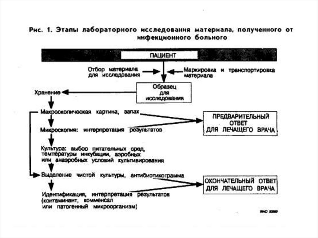 идентификация, хранение, подготовка образца к исследованию, могут быть