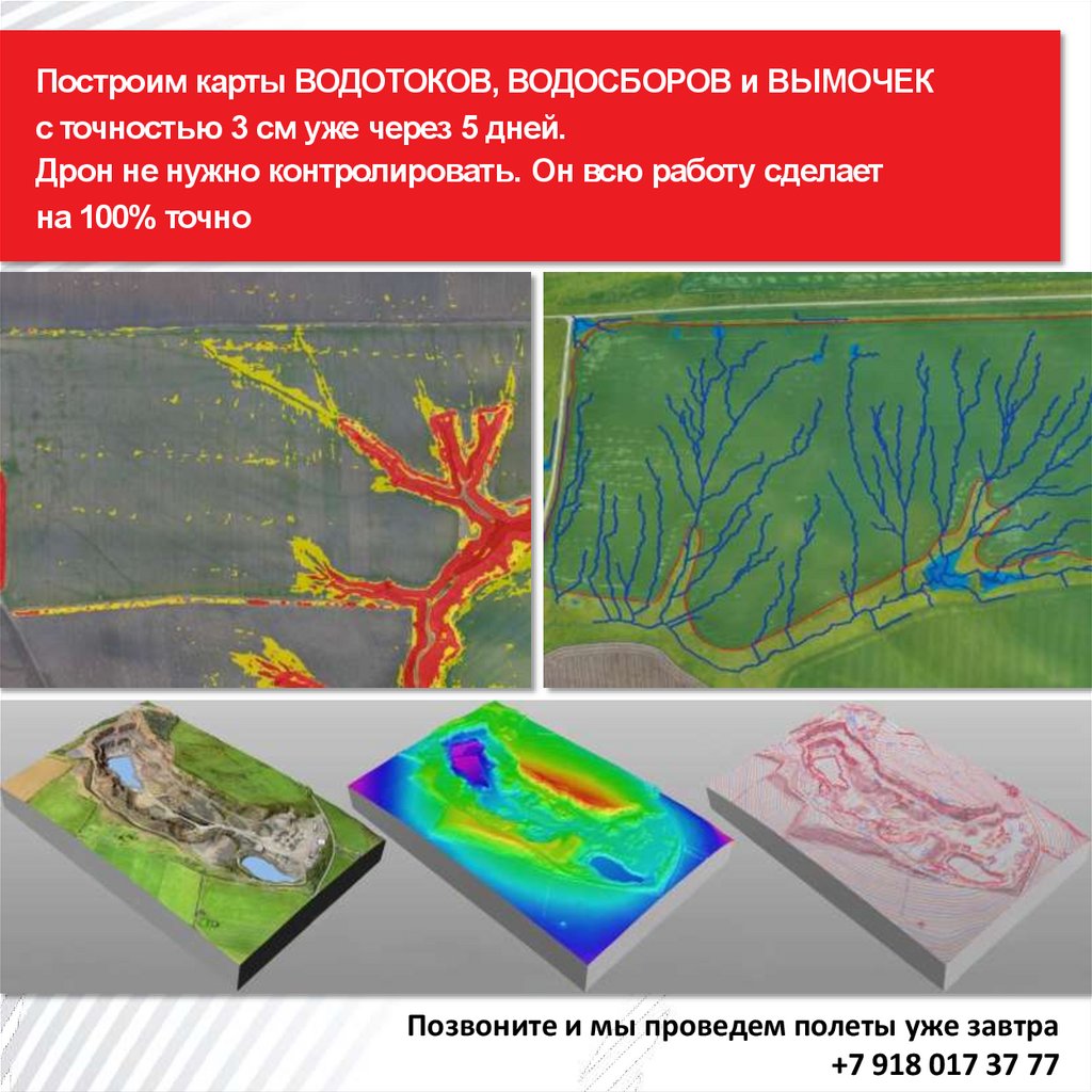 Построим карты ВОДОТОКОВ, ВОДОСБОРОВ и ВЫМОЧЕКс точностью 3 см уже через 5 дней.