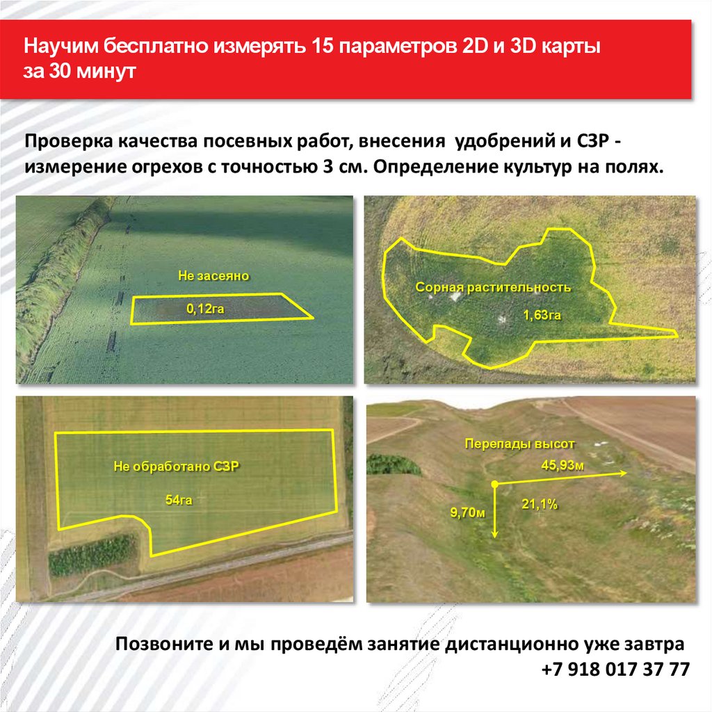 Проверка качества посевных работ, внесения удобрений и СЗР измерение огрехов с точностью 3 см. Определение культур на полях.