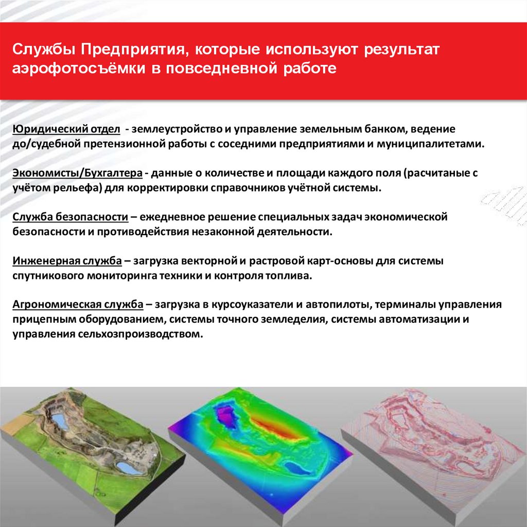 Службы Предприятия, которые используют результатаэрофотосъёмки в повседневной работе