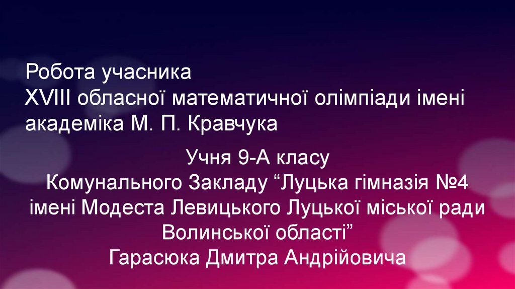 Робота учасника XVIII обласної математичної олімпіади Гарасюка Дмитра Андрійовича