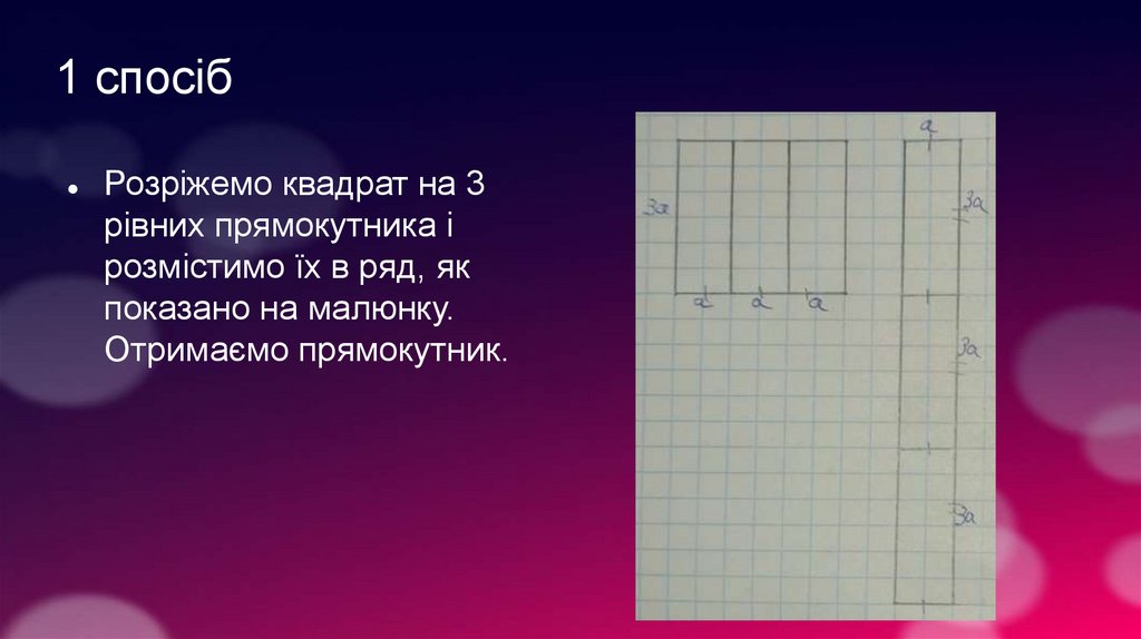 1 спосібРозріжемо квадрат на 3