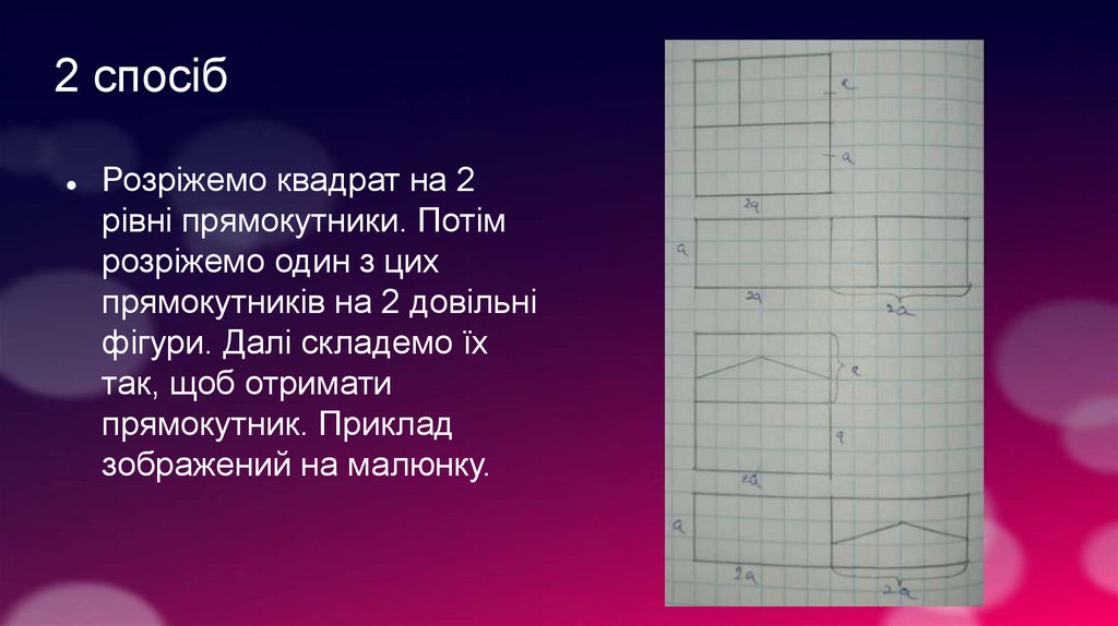 2 спосібРозріжемо квадрат на 2