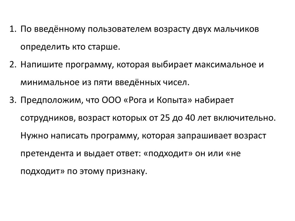 1. По введённому пользователем возрасту двух мальчиковопределить кто старше.