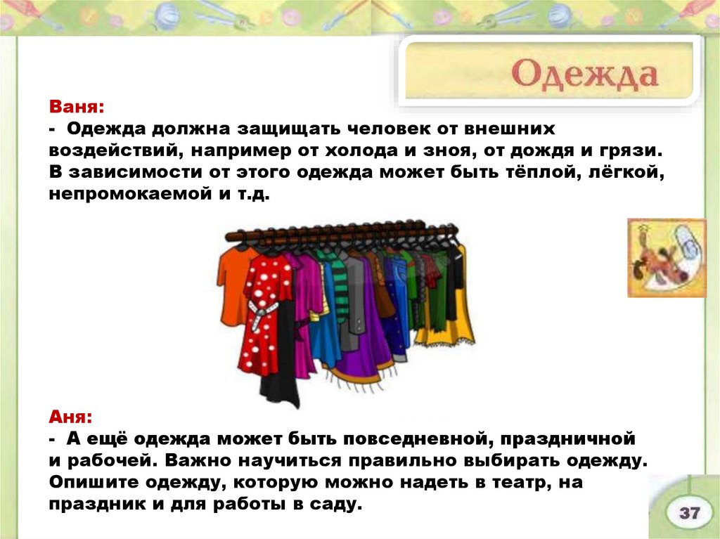 Ваня:- Одежда должна защищать человек от внешних