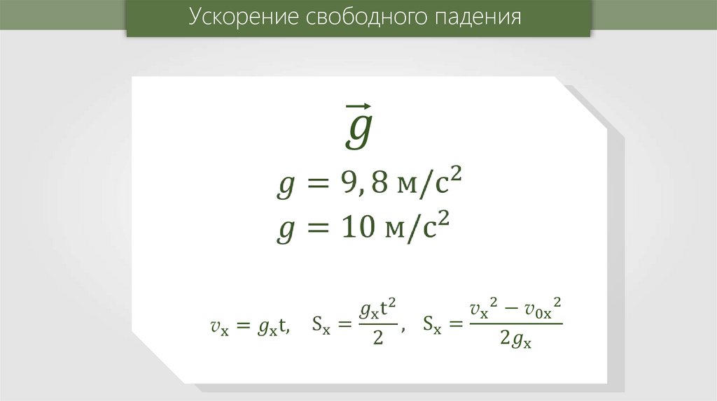 Ускорение свободного падения – этоускорение, которое приобретает тело во