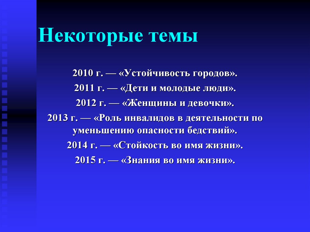 Некоторые темы2010 г. — «Устойчивость городов».