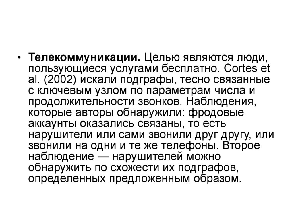 • Телекоммуникации. Целью являются люди,пользующиеся услугами бесплатно. Cortes et
