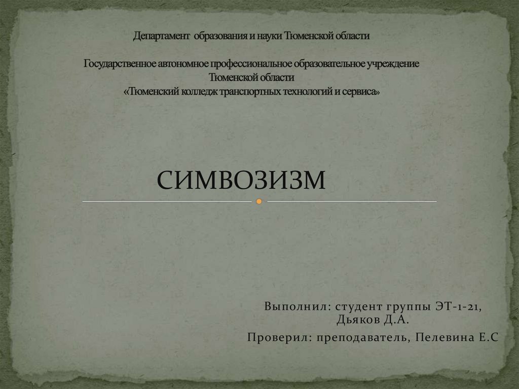СИМВОЗИЗМВыполнил: студент группы ЭТ-1-21,