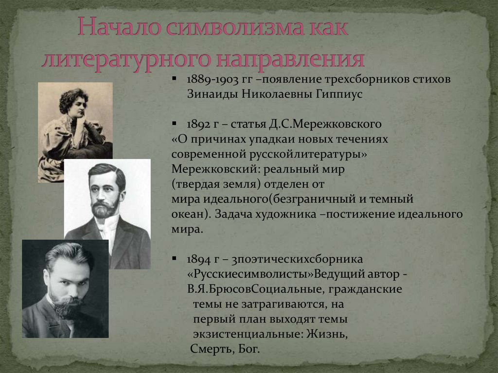 1889-1903 гг –появление трехсборников стиховЗинаиды Николаевны Гиппиус