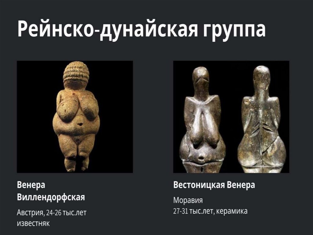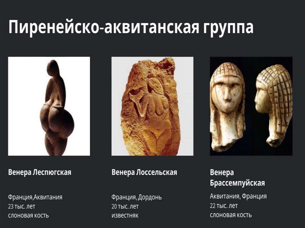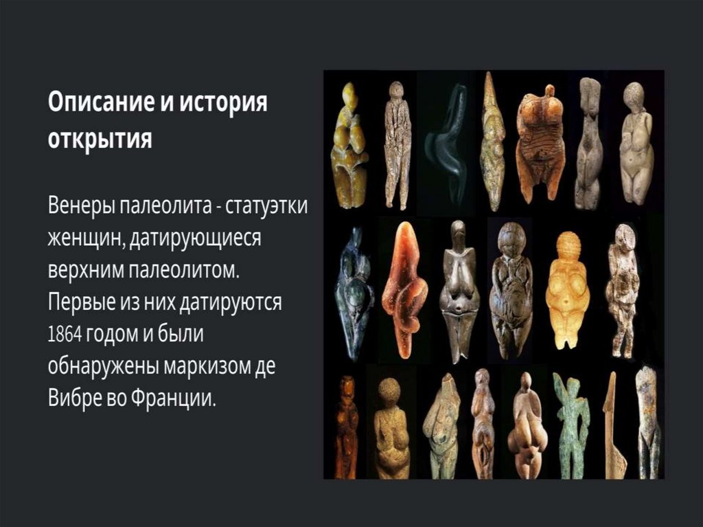 УИскусство палеолита (древнекаменного века) - это искусство многоцветных пещерных росписей и «палеолитических Венер»
