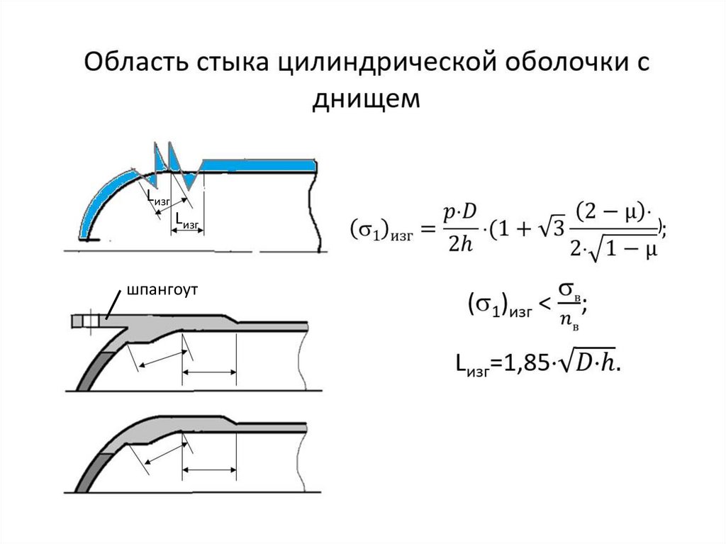 районе стыка цилиндрической оболочки и днища, удовлетворяющего