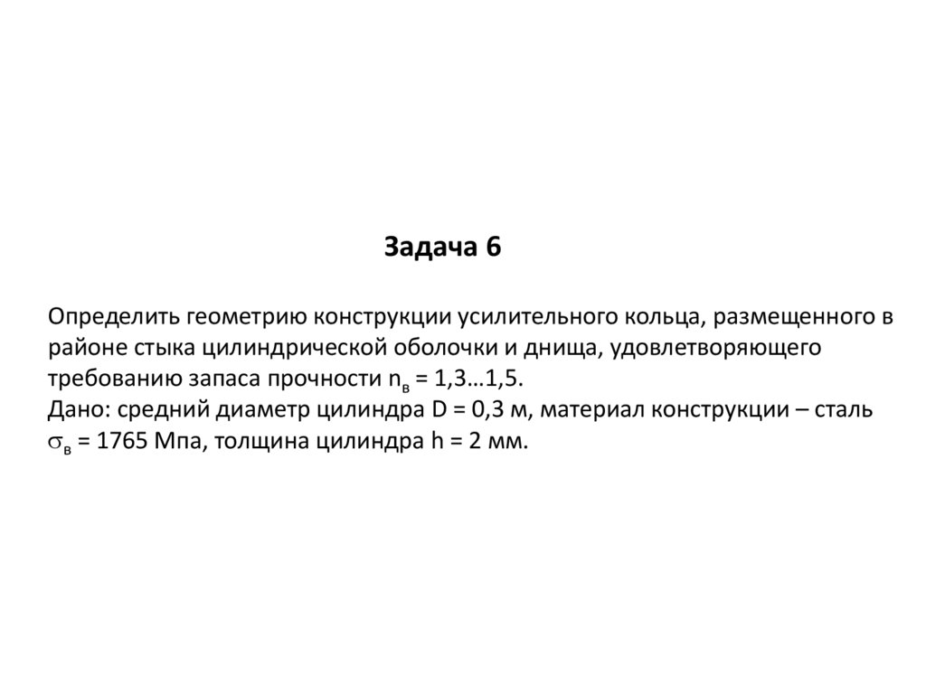 Задача 6Определить геометрию конструкции усилительного кольца, размещенного в