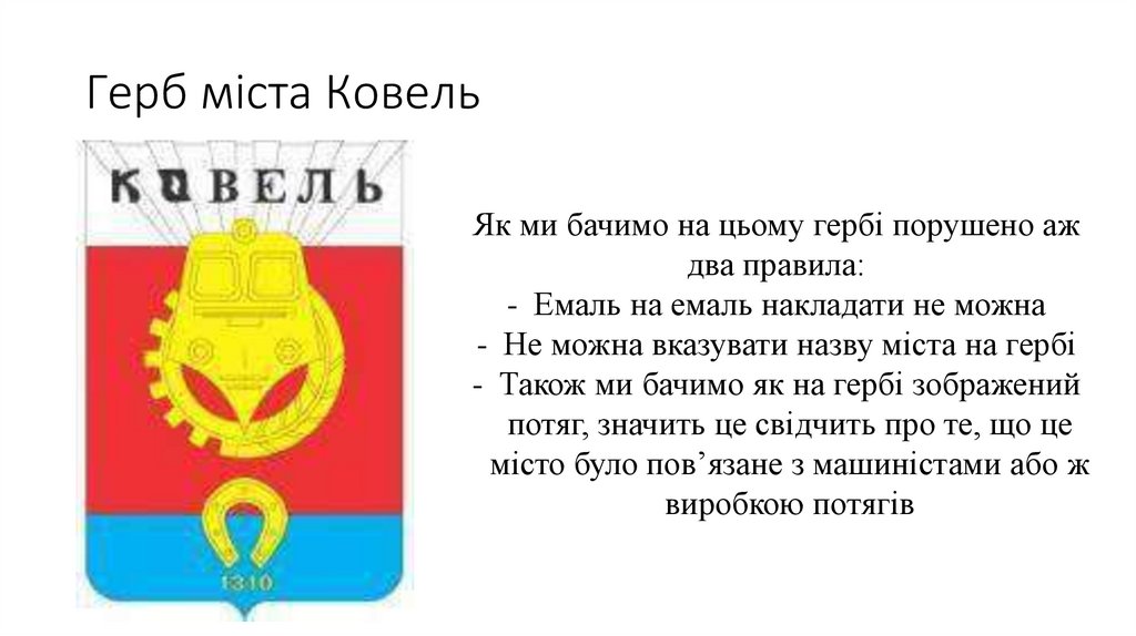 Герб міста КовельЯк ми бачимо на цьому гербі порушено аж