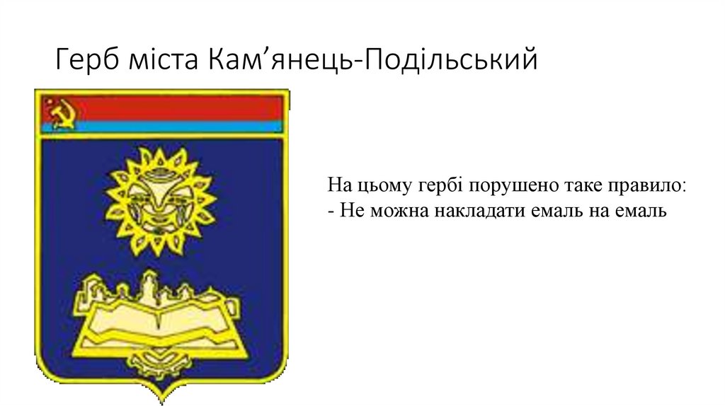 Герб міста Кам’янець-ПодільськийНа цьому гербі порушено таке правило: