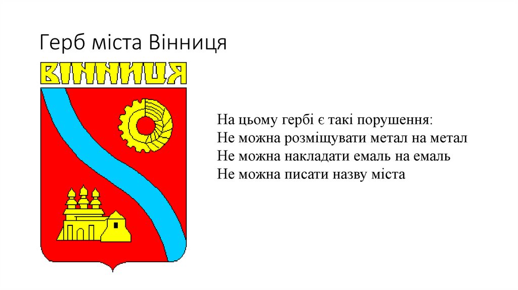 Герб міста ВінницяНа цьому гербі є такі порушення: