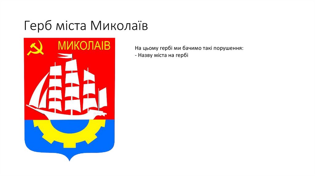 Герб міста МиколаївНа цьому гербі ми бачимо такі порушення: