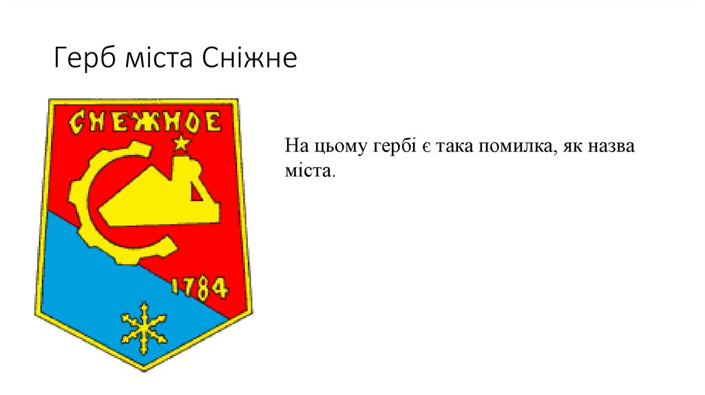 Герб міста СніжнеНа цьому гербі є така помилка, як назва