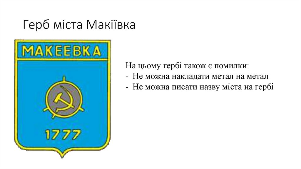 Герб міста МакіївкаНа цьому гербі також є помилки:
