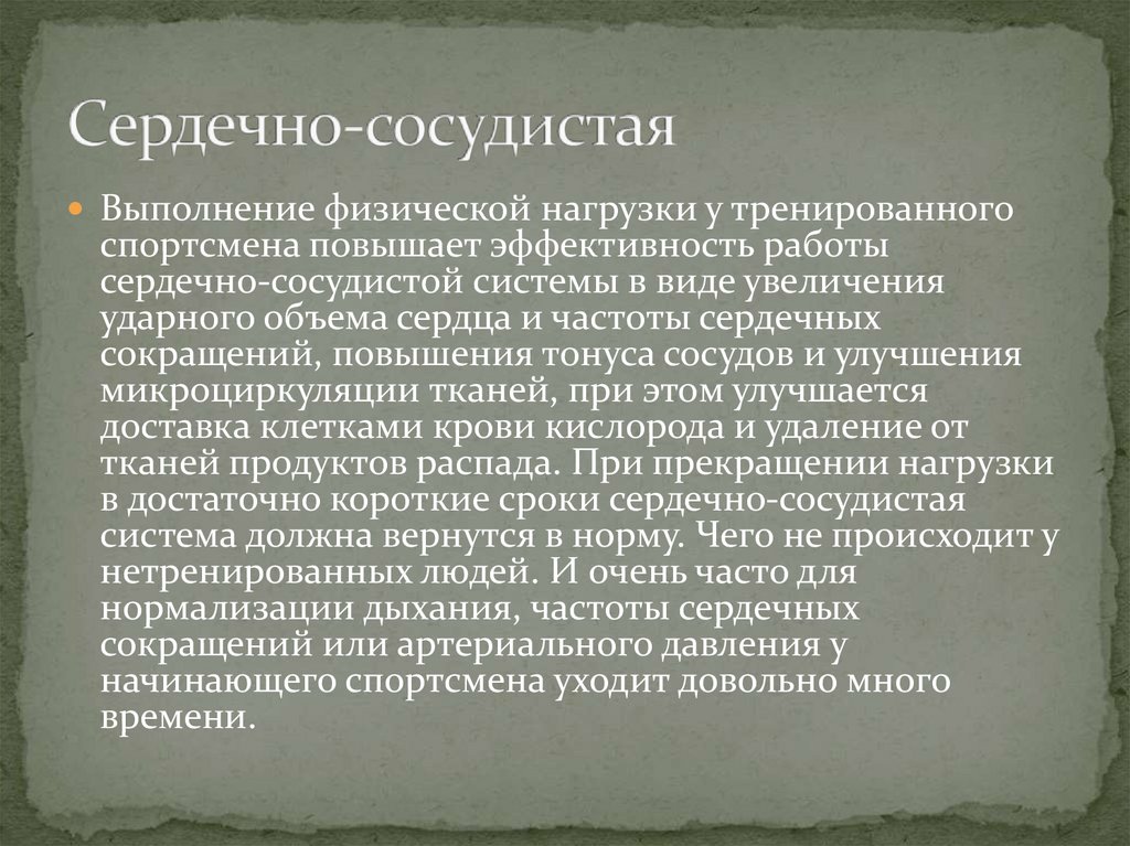 Выполнение физической нагрузки у тренированногоспортсмена повышает эффективность работы
