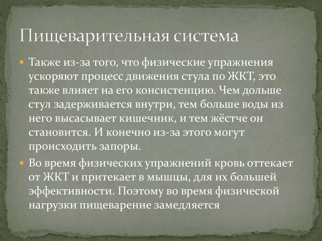 Также из-за того, что физические упражненияускоряют процесс движения стула по ЖКТ, это