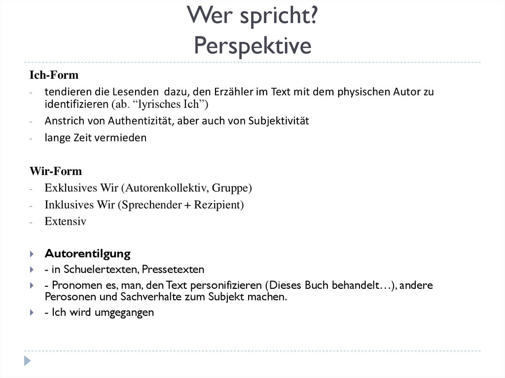 - Pronomen es, man, den Text personifizieren (Dieses Buch behandelt…), andere