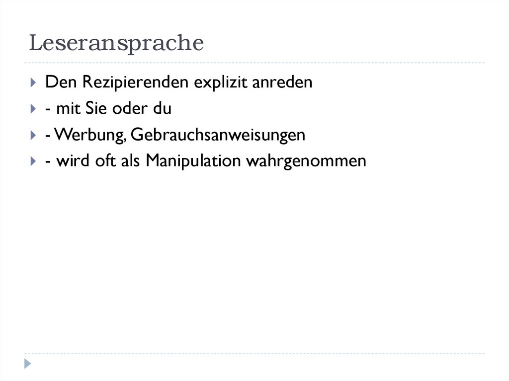 Die Analyse der sprachlichen Mittel ist kein Selbstzweck, sondern dient der