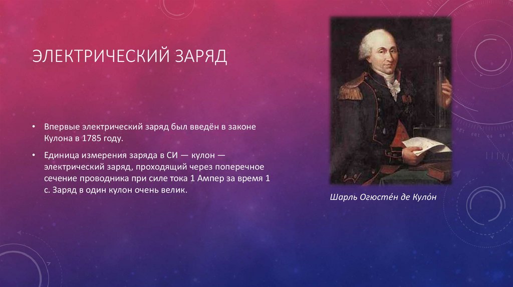 ЭЛЕКТРИЧЕСКИЙ ЗАРЯД• Впервые электрический заряд был введён в законе