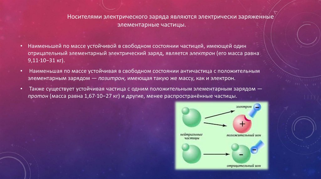 Носителями электрического заряда являются электрически заряженныеэлементарные частицы.