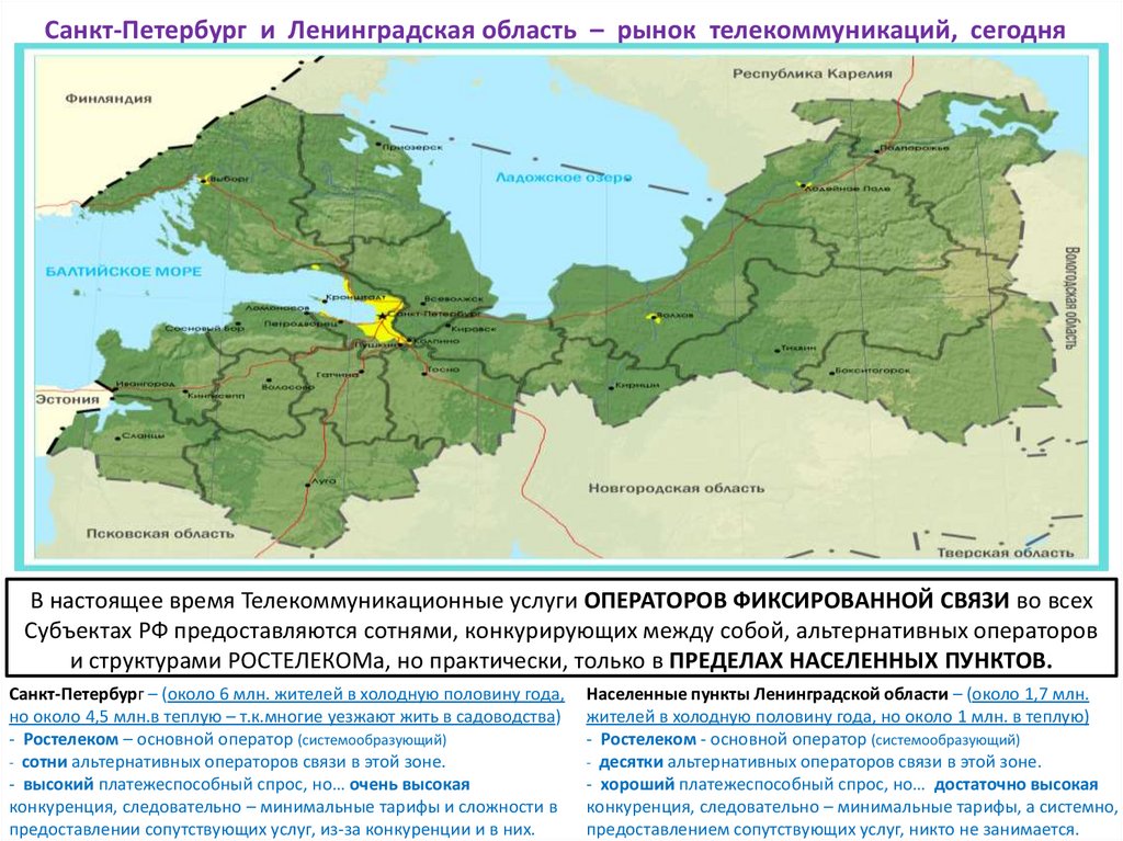Санкт-Петербург и Ленинградская область – рынок телекоммуникаций, сегодняВ настоящее время Телекоммуникационные услуги ОПЕРАТОРОВ ФИКСИРОВАННОЙ СВЯЗИ во всех