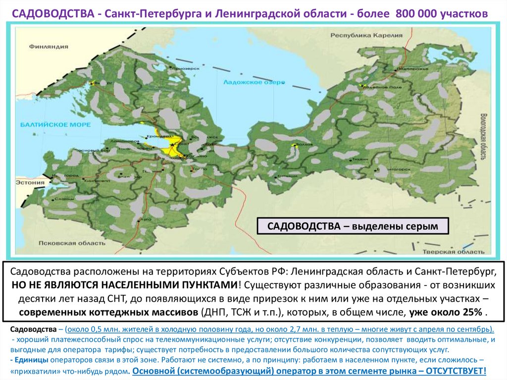 САДОВОДСТВА - Санкт-Петербурга и Ленинградской области - более 800 000 участковСАДОВОДСТВА – выделены серым