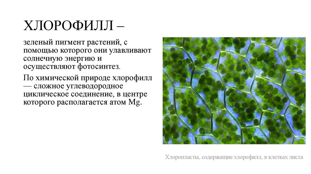 ХЛОРОФИЛЛ –зеленый пигмент растений, с