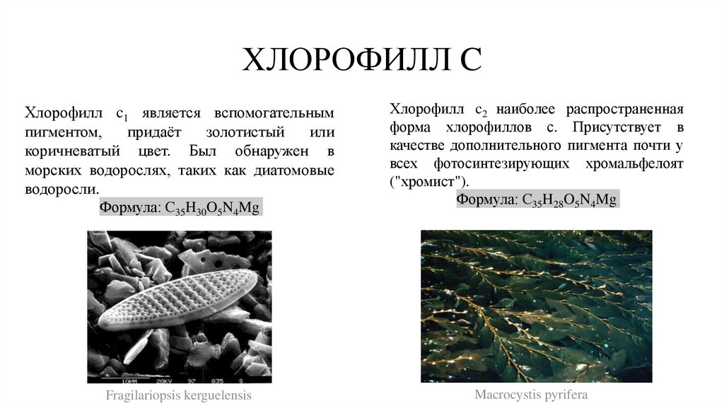 ХЛОРОФИЛЛ CХлорофилл c1 является вспомогательным