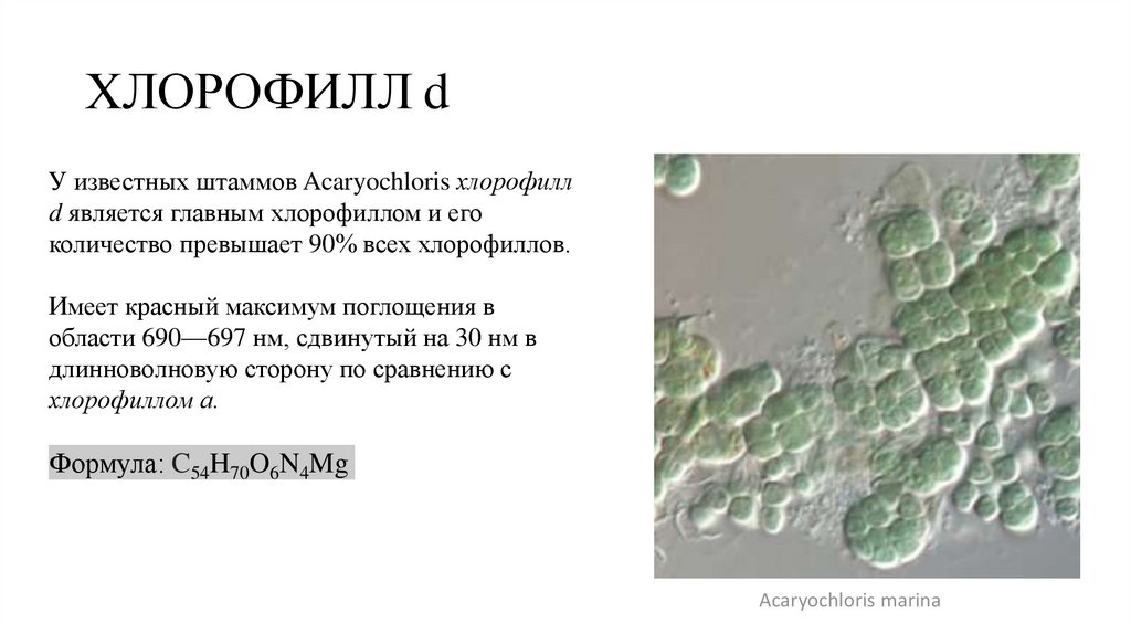 ХЛОРОФИЛЛ dУ известных штаммов Acaryochloris хлорофилл