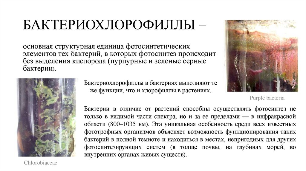 РАСПРОСТРАНЕНИЕБАКТЕРИОХЛОРОФИЛЛОВ