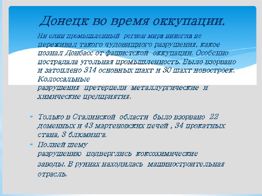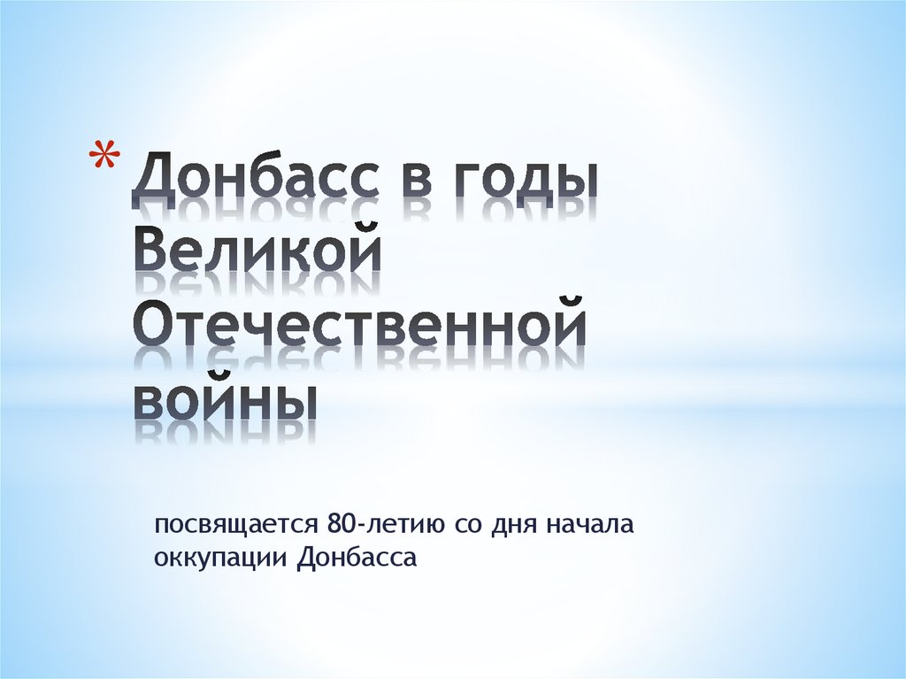 Донбасс в годы Великой Отечественной войны. Восстановление Донбасса