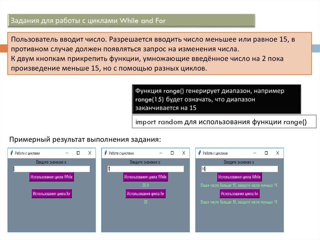 Пользователь вводит число. Разрешается вводить число меньшее или равное 15, впротивном случае должен появляться запрос на изменения числа.