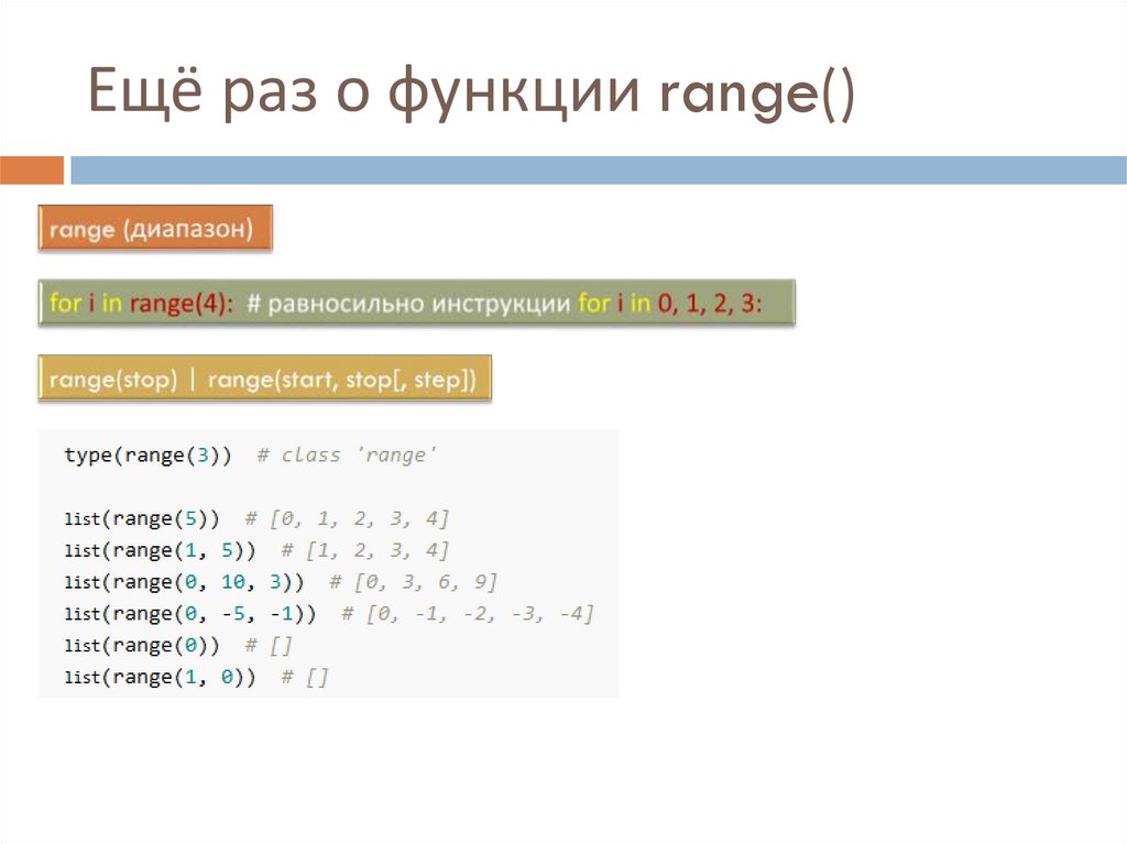 Ещё раз о функции range()6.