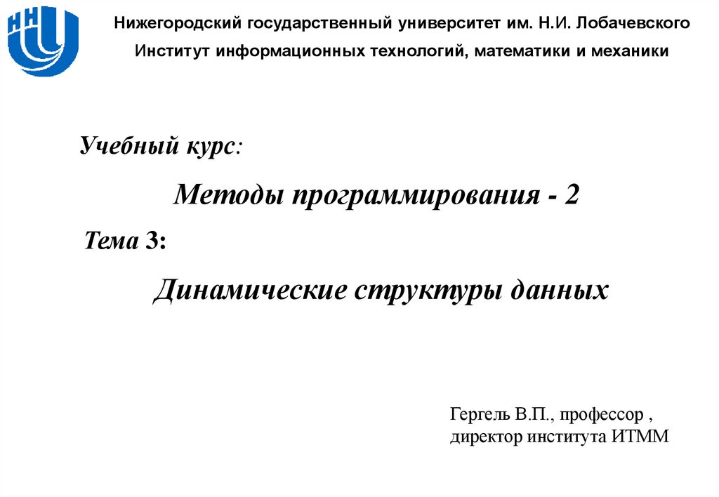 НИЖЕГОРОДСКИЙ ГОСУДАРСТВЕННЫЙ УНИВЕРСИТЕТ ИМ. Н.И. ЛОБАЧЕВСКОГОИНСТИТУТ ИНФОРМАЦИОННЫХ ТЕХНОЛОГИЙ, МАТЕМАТИКИ И МЕХАНИКИ