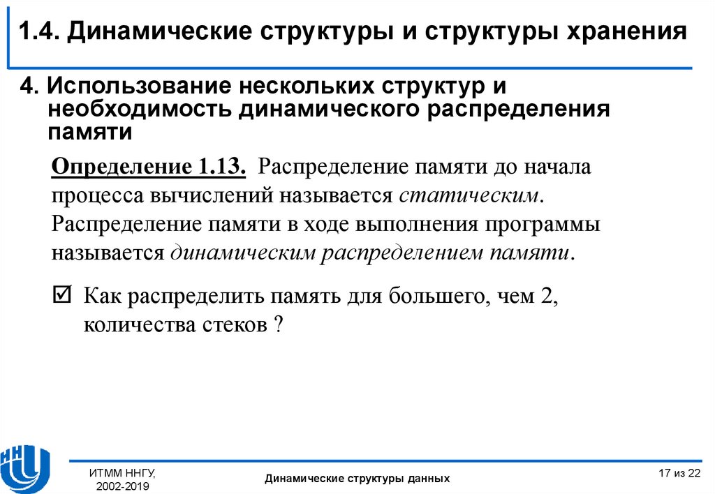 1.4. Динамические структуры и структуры хранения…3. Проблема эффективного использования памяти