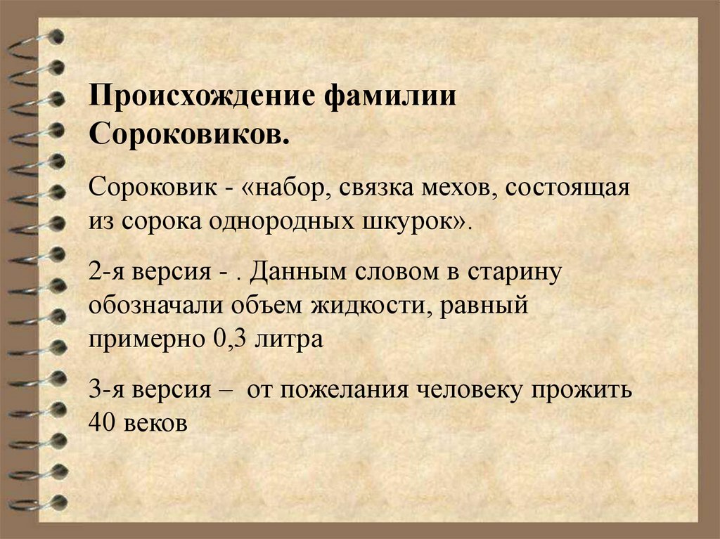 Происхождение фамилииСороковиков.
