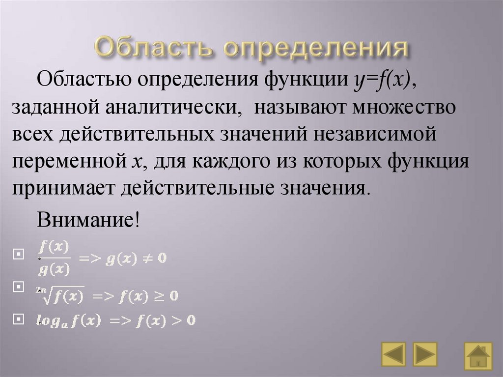 Областью определения функции y=f(x),заданной аналитически, называют множество