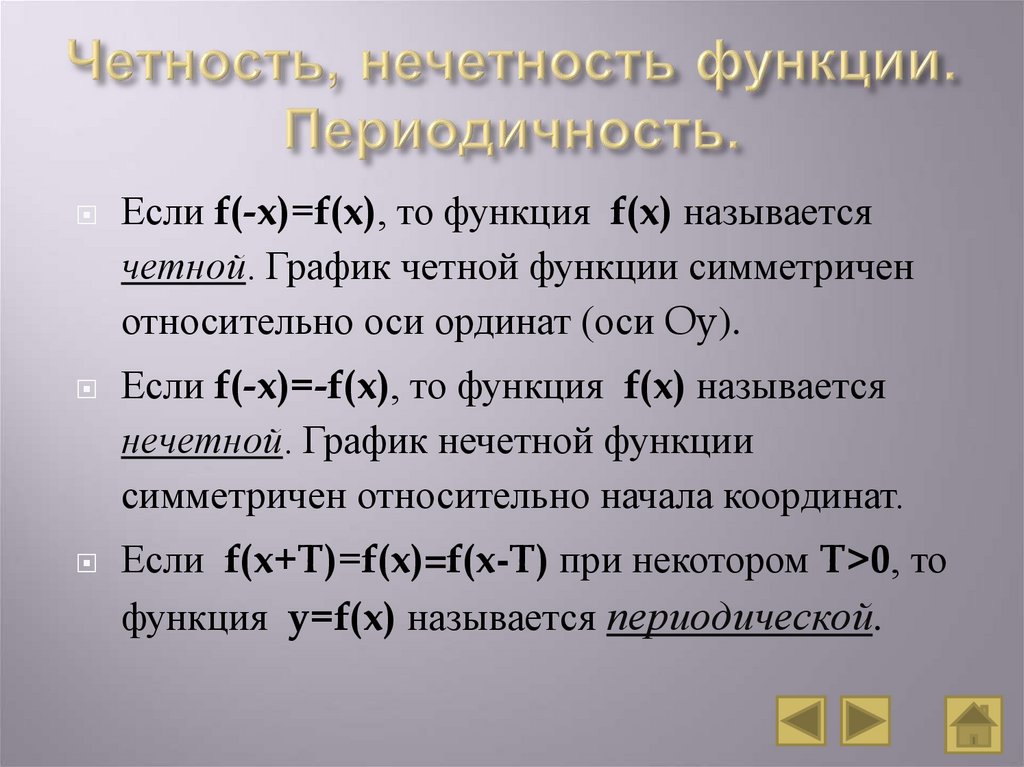 Если f(-x)=f(x), то функция f(x) называетсячетной. График четной функции симметричен